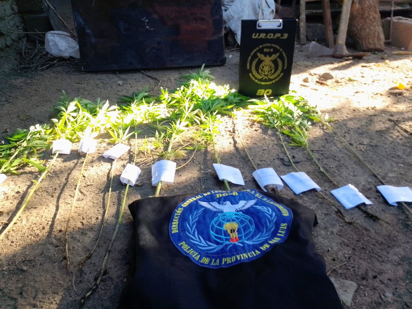 Este sábado 3 de enero por la tarde, policías de la Dirección General de Lucha Contra el Narcotráfico realizaron un procedimiento en Santa Rosa del Conlara, donde incautaron plantas de marihuana.