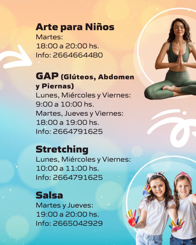 Desde el municipio invitan a la comunidad a sumarse y disfrutar de un verano activo, creativo y lleno de energía. Quienes estén interesados pueden consultar horarios e inscripciones directamente con cada profesor.