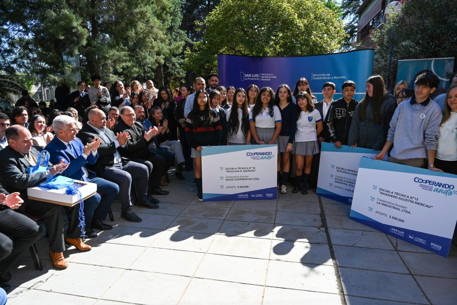 Durante el aniversario también se realizó la entrega de insumos a cooperativas escolares de Villa Mercedes, dentro del Programa ‘Cooperando Ando’, impulsado para fortalecer el cooperativismo y el emprendedurismo en el ámbito educativo.