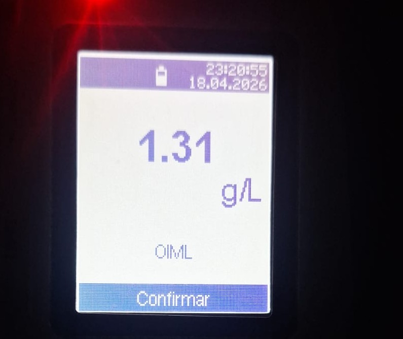 Al conductor se le realizó el alcotest, el cual arrojó resultado positivo con 1,31 g/l de alcohol en sangre.