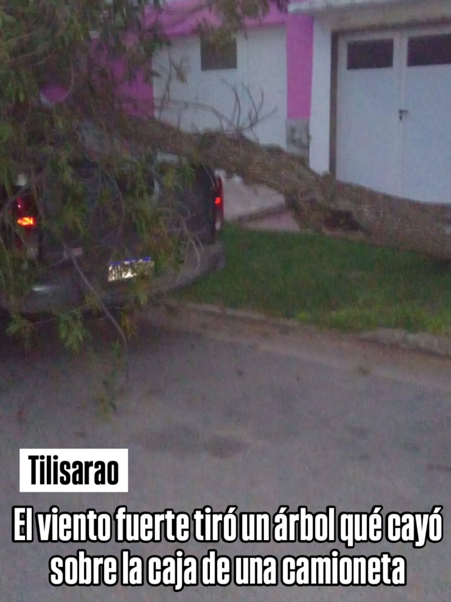 UN ÁRBOL CAYÓ SOBRE UNA CAMIONETA EN TILISARAO